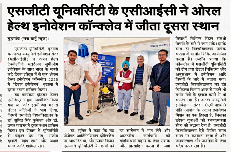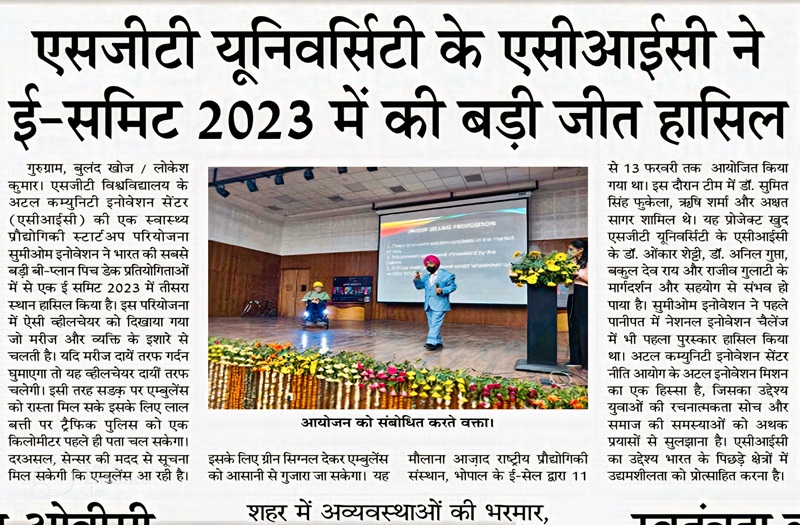 Synergy Innovation Award in August 2022 by SGT University